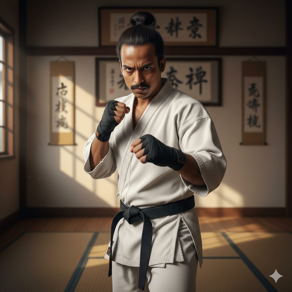 Convert into a 4K, ultra-realistic portrait of a young Indian man with the exact same face as the uploaded image (no alteration, 100% identical). He has short, dark, clean-shaven hair. He is wearing a sleek, modern black turtleneck. He is looking directly at the viewer with a stoic, intense gaze. The background is a minimalist, stark white studio with strong, dramatic shadows. The overall mood is powerful and edgy.